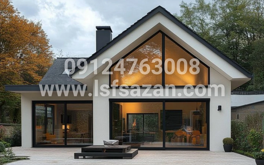 طراحی مدرن در ویلای پیش ساخته با استفاده از متریال سبک. نماهای شفاف و پلان‌های باز به دست می‌آید. نکات عملی: