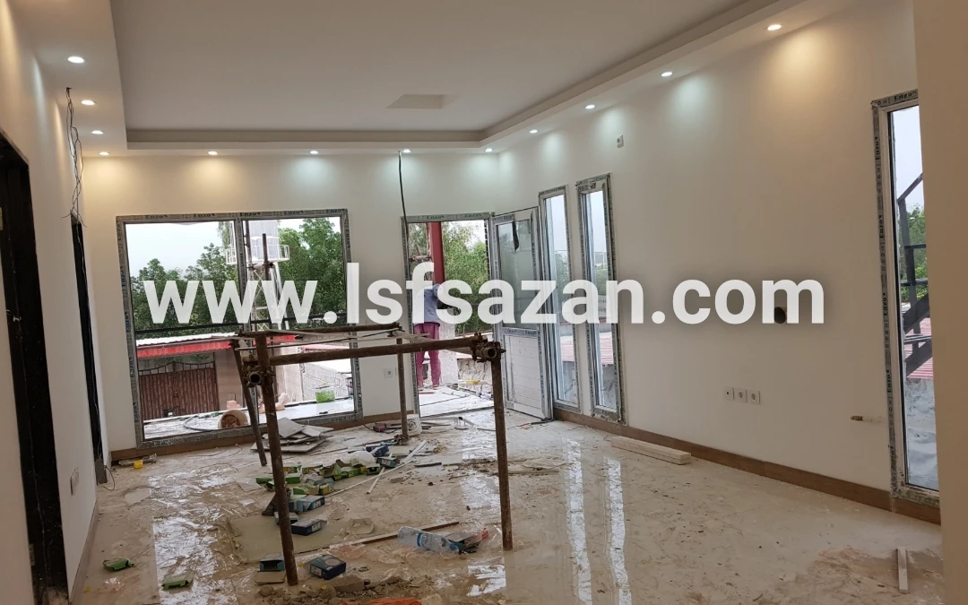 تجهیزات داخلی : کناف سبز ایران mr (ضد آب) ، کف سازه سرامیک درجه یک ، آشپزخانه تمام MDF ، دو خواب (سرویس کامل حمام و دستشویی)