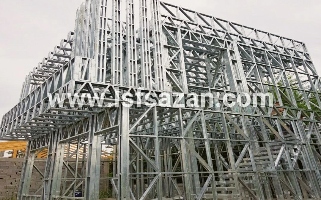 استراکچر : سیستم سرد نورد گالوانیزه به صورت تمام پیچ و مهره ای ، ضخامت ۱۰ سانتی دیواره ها