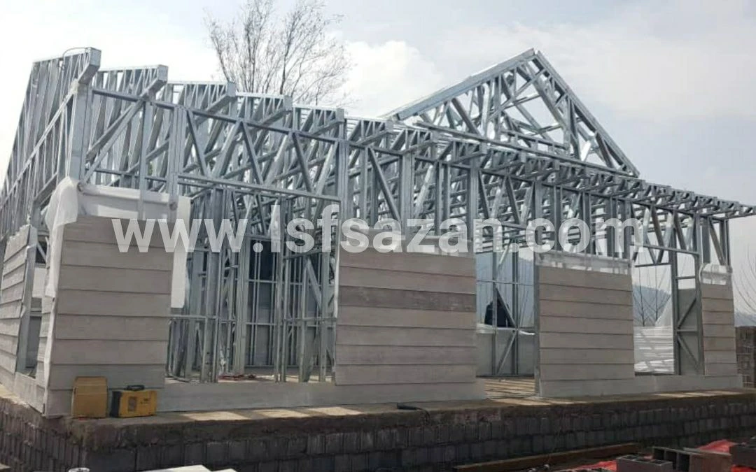 استراکچر : سیستم سرد نورد گالوانیزه به صورت تمام پیچ و مهره ای ، ضخامت ۱۰ سانتی دیواره ها